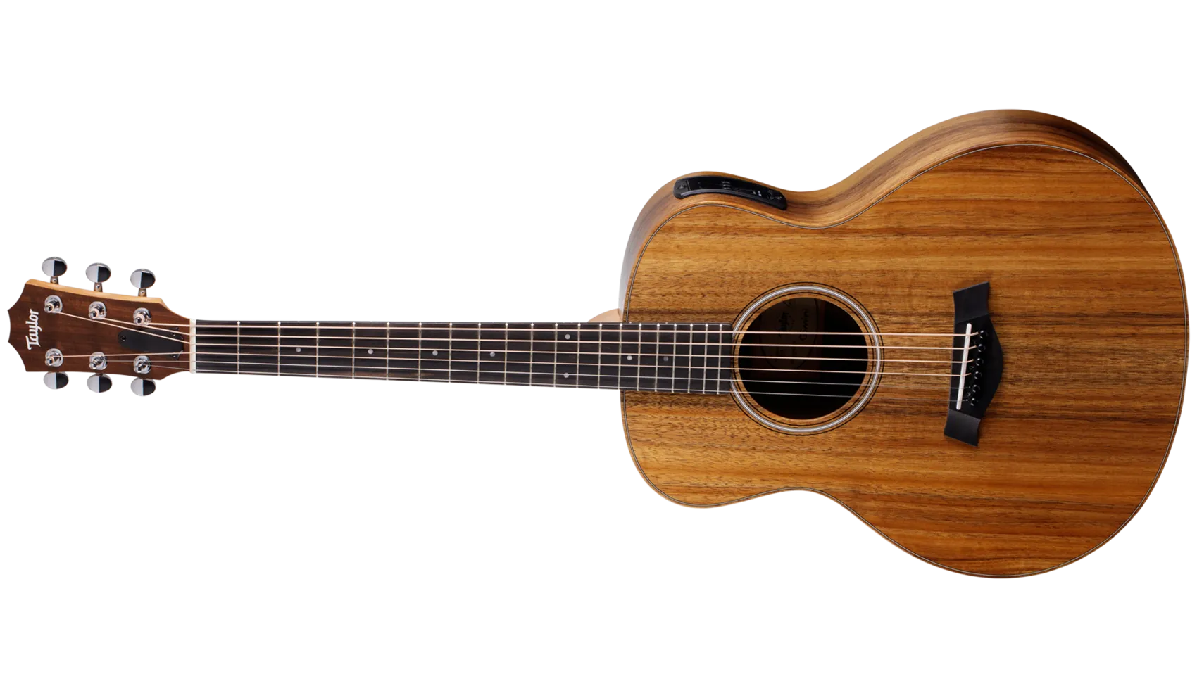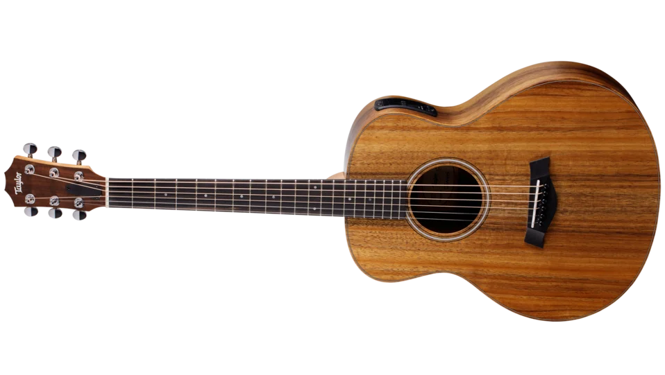 The GS Mini-e Koa brings the vibrant sound and organic beauty of Hawaiian koa to Taylor's ultra-popular reduced-scale acoustic guitar. The GS Mini's compact proportions make it a great choice for players who take their music on the road, and with a solid koa top, this model serves up a rich, bold sound that punches well above its weight for a smaller guitar. The built-in ES-B pickup offers clear, natural amplified tone and includes a digital tuner with an easy-to-read LED display. The GS Mini-e Koa ships with a structured gig bag.